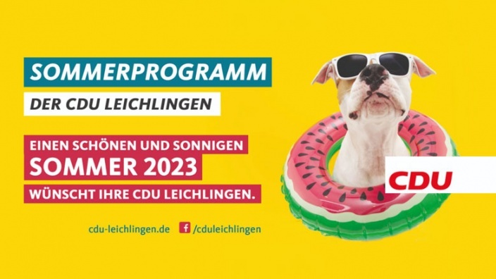 CDU Sommerprogramm 2023 Insgesamt zwölf Veranstaltungen erwarten Sie in unserem diesjährigen Sommerprogramm. Wir freuen uns Sie bei unseren Veranstaltungen und Aktionen...